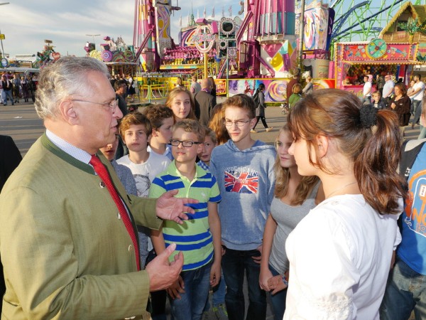 Joachim Herrmann mit Schülern des Fridericianums auf der Wiesn